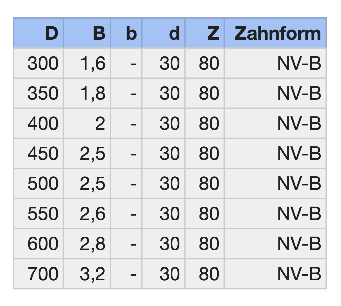 • Zahnform: KV-B (Spitzzahn)