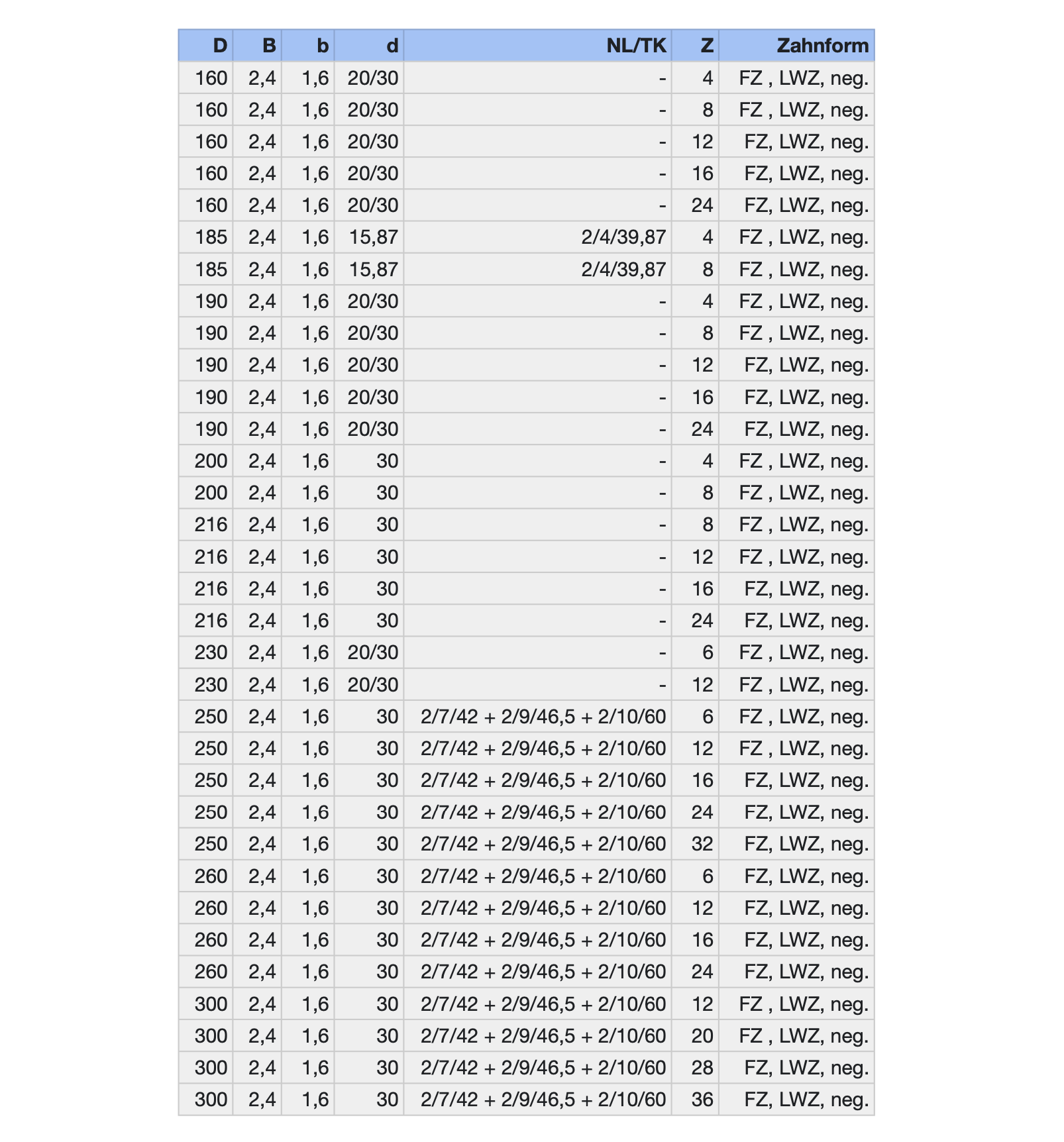 Die Abmessungen eines Kreissägeblatt setzt sich wie folgt zusammen: