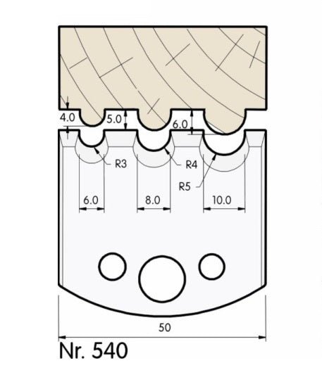 F 540 SP / HSS Standard-Profilmesser und Abweiser 50 mm
