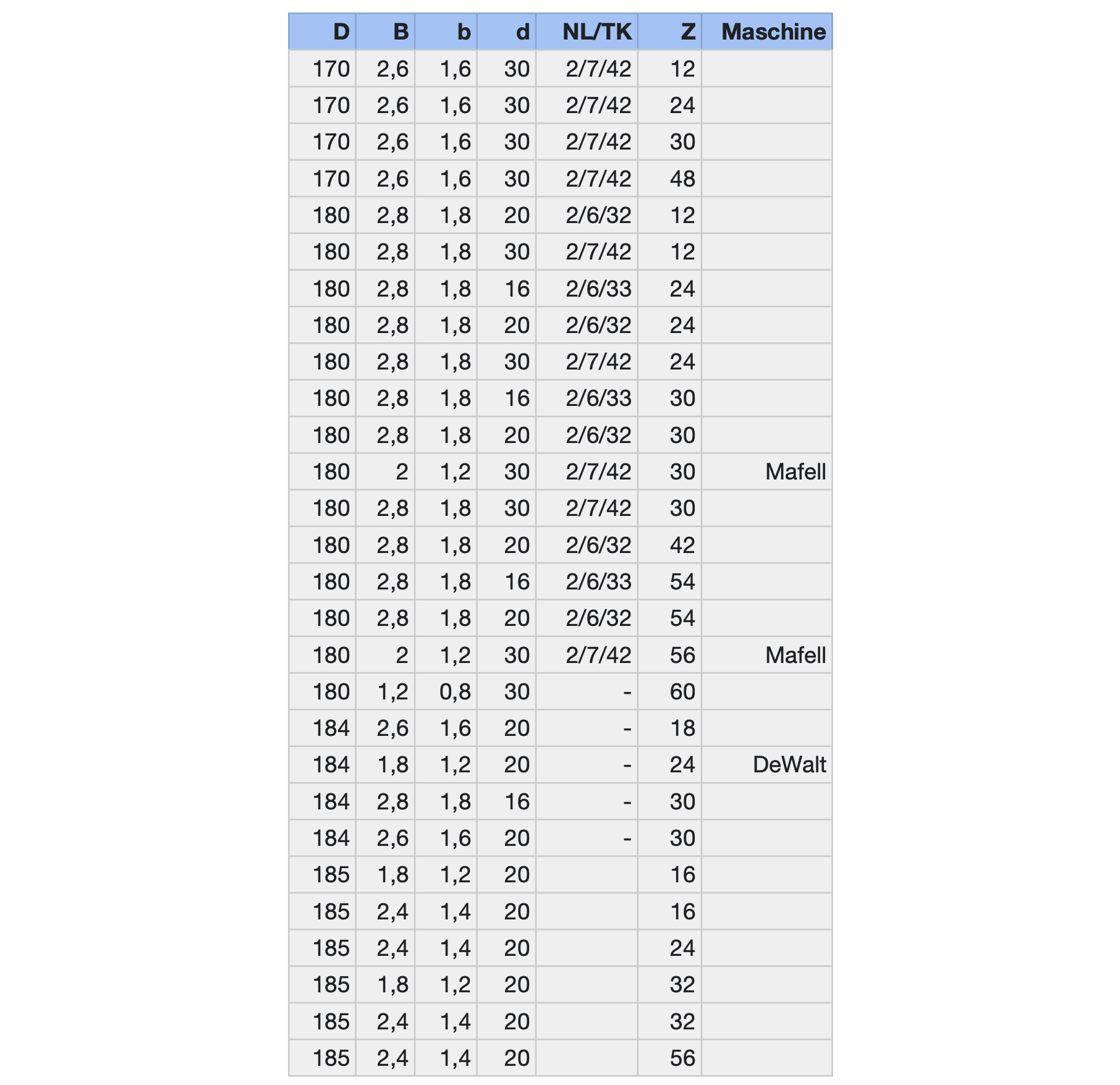 In vielen Spezialausführungen für Festool und Mafell (mehr Infos zu den passenden Maschinen in der Tabelle in Abb. 3)