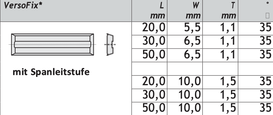 10 Stück HM Mini-Wendeplatten Z4 VersoFix mit Spanleitstufe, 35° Qualität KCR08