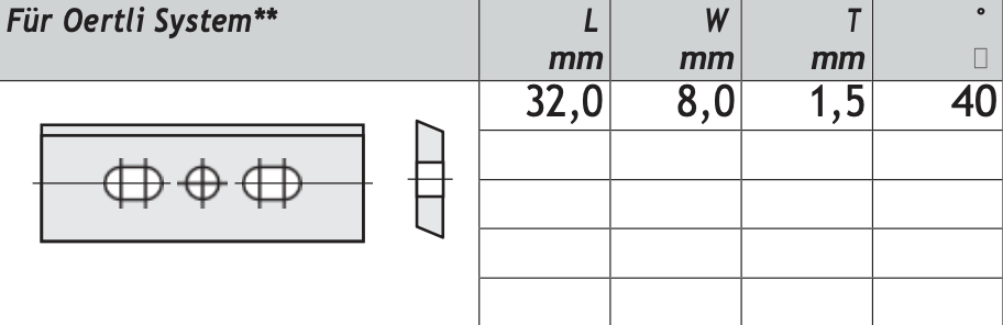HM Wendeplatten Z2 (3-Loch) für System Oertli, 32 x 8 x 1,5 mm, 40° Qualität MG18 - 10 Stück