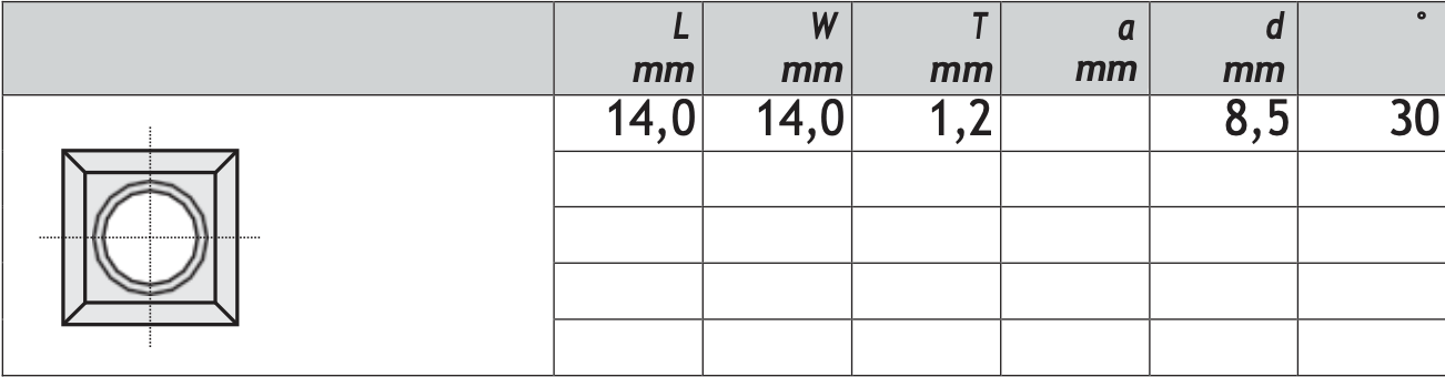 10 Stück HM Wendeplatten Z4 (1-Loch) 14,3 x 14,3 x 2,5 mm, 35° Quadratisch Qualität KCR08