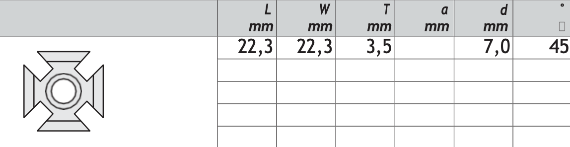 10 Stück HM Wendeplatten Z4 (1-Loch) 22,3 x 22,3 x 3,5 mm, 45° Qualität MG18