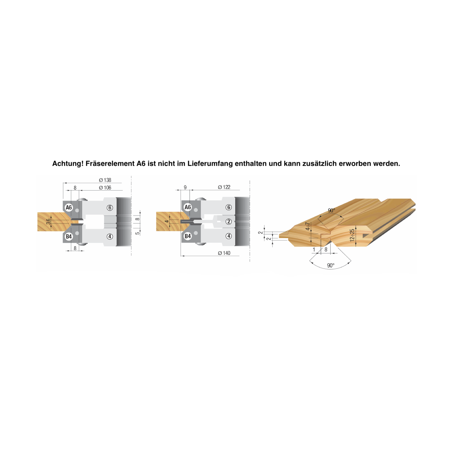 zum Herstellen von Rauspund bzw. Nut- und Feder Verbindungen mit oder ohne verschiedener Sichtfugen. Für Holzstärken von 12 bis 40 mm.
